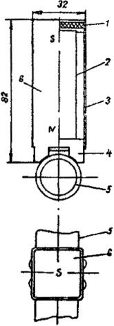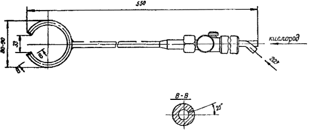 1.3. Магнитную пайку следует применять для соединения стальных трубопроводов диаметром до 23 мм. ПРИМЕЧАНИЕ. Пайка оцинкованных труб указанными в настоящей инструкции оборудованием и материалами не допускается. 2. МАТЕРИАЛЫ И ОБОРУДОВАНИЕ ДЛЯ МАГНИТНОЙ ПАЙКИ2.1. Для проведения магнитной пайки необходимо следующее оборудование: - баллон с кислородом; - баллон с пропан-бутаном или ацетиленом; - пропан-бутановая или ацетилено-кислородная многопламенная кольцевая горелка; - порошковый припой марки ПАН-3 М; - органическая связка; - железный порошок марок ПЖО; ПЖ1; ПЖ2 по ГОСТ 9849-74; - постоянные переносные магниты; - совки из немагнитного материала (медь, дерево) шириной 20 мм для введения железного порошка в зазор и нанесения пасты-припоя. 2.2. Для пайки следует использовать пастообразный припой, состоящий из расплавляемой фазы порошкового припоя, ферромагнитного наполнителя (нерасплавляемая фаза), флюса и органической связки на основе раствора синтетического каучука в уайт-спирите. 2.3. Расплавляемая фаза порошкового припоя (ПАН-3), с температурой плавления 935ºС должна иметь грануляцию не более 160 мк и соответствовать следующему составу (в % по массе): медь - 60÷32 (основа) марганец - 30-35 никель – 7÷8 кремний - 3-5 2.4. В условиях предприятия-изготовителя в припой (ПАН-3) вводится ферромагнитный наполнитель (железный порошок марок ПЖ 0-2 грануляции до 315 мк) в количестве 20% его массы и флюс типа АНШП-2 (шлак для пайки Академии наук УССР) в количестве 20% к общей массе металлической фазы. Полученная смесь (порошковый припой марки ПАН-3М) тщательно перемешивается. ПРИМЕЧАНИЕ. Порошковый припой марки ПАН-3М изготавливается опытным производством ИЭС им. Е.О. Патона и НПО Тулачермет Минчермета СССР и поставляется в полиэтиленовых герметичных емкостях объемом 1-3 л. 2.5. В построечных условиях в порошковый припой следует ввести органическую связку в количестве 20-25% (по массе). Консистенция получаемого пастообразного припоя (пасты-припоя) должна соответствовать консистенции технического вазелина или густой сметаны. 2.6. Приготовление пасты-припоя должно производиться в полиэтиленовых банках, в количестве, необходимом для работы в течение одной смены (около 1 кг). При условии хранения пасты-припоя в закрытой емкости допускается ее использование в течение 4-5 суток. При более длительном хранении доведение консистенции пасты-припоя до необходимой производится путем добавления органической связки. Хранение припоя и железного порошка должно осуществляться в сухих помещениях. 2.7. Наведение магнитного поля в зазоре между трубами должно производиться стержневыми постоянными магнитами (рис. 2). Пригодность магнитов к эксплуатации определяется путем контроля тягового усилия, которое должно составлять не менее 5 кг. Рис. 1. Схема магнитной пайки нахлесточного соединения труб с раздачей одного конца трубы Рис. 2. Общий вид переносного постоянного магнита для магнитной пайки труб 1 - уплотнитель; 2 - магнитный стержень; 3 - корпус; 4 - полюсный наконечник; 5 - труба; 6 - магнит 2.8. Для нагрева стыков следует использовать пропан-бутановые или ацетилено-кислородные накидные горелки (рис. 3). 3. ТРЕБОВАНИЯ К СБОРКЕ СОЕДИНЯЕМЫХ ЭЛЕМЕНТОВ И ИХ ПОДГОТОВКА К ПАЙКЕ3.1. Пайку следует производить, используя нахлесточные соединения труб с раздачей одного конца трубы (см. рис. 1) или с надвижной стальной