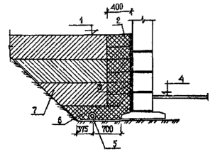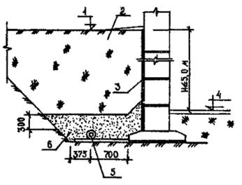 Рис 6. Конструкция пристенного дренажа глубиной заложения до 5 м: