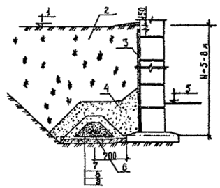 Рис 7. Конструкция пристенного дренажа глубиной заложения от 5 до 8 м: