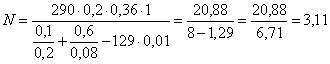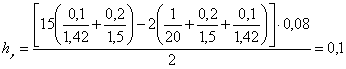 Пример 2. Бетонирование осуществляется по способу «холодного бетона». Определить толщину утеплителя - опилок, если известно: l = 0,08 ккал/м×ч×град; а = 20 ккал/м2×ч×град; hг = 10 см; hб = 20 см; lб = 1,5 ккал/м×ч×град; Тв = -15°; Тб = -2°; lг = 1,42 ккал/м×ч×град. По формуле (3) определим толщину утеплителя: