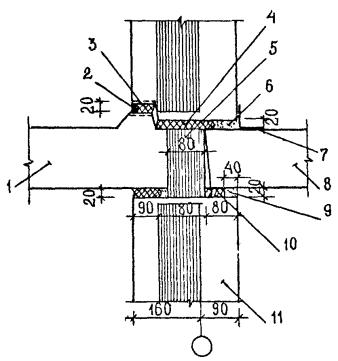 Примечания. 1. Все грузозахватные приспособления заказываются через Управление механизации и автотранспорта (УМиАТ) ПСО Главмосстрой 2. В скобках указаны новые номера чертежей на состояние после 1988 г. 9. ПРОИЗВОДСТВО МОНТАЖНЫХ РАБОТ В ЗИМНИХ УСЛОВИЯХ9.1. Монтаж дома в зимних условиях при среднесуточной температуре ниже +5° и минимальной суточной температуре ниже 0°, но не позднее 1 ноября, должен производиться в соответствии с указаниями проекта, требований СНиП 3.03.01-87 "Несущие и ограждающие конструкции" и настоящей "Инструкции". 9.2. В зимних условиях работ монтаж сборных элементов должен выполняться безобогревным способом с применением в растворе противоморозных химических добавок. Монтаж каждого последующего этажа может быть разрешен после достижения раствором в горизонтальных и вертикальных стыках нижнего этажа прочности, указанной в проекте. 9.3. При температуре наружного воздуха ниже -20°С следует повышать марку раствора с противоморозными добавками на одну ступень. 9.4. Раствор с протизоморозными химическими добавками при укладке в стыки конструкций должен иметь температуру не ниже +5°С, для чего ящики для раствора должны иметь крышки. Не допускается укладка раствора в стыки со снегом и наледью на поверхностях конструкций. Для предохранения поверхностей конструкций от снега и наледи стыки панелей должны быть защищены переносными щитами или рулонными материалами. В случае образования наледи и снега в стыках, поверхности панелей следует тщательно очищать металлическими щетками или скребками. Запрещается отогревать поверхности конструкций паром или горячей водой. 9.5. Нарастание прочности раствора в горизонтальных и вертикальных стыках должно соответствовать данным табл. 5 Монтаж выше 5 этажа и каждого последующего этажа может быть разрешен после достижения раствором в горизонтальных и вертикальных стыках нижнего этажа прочности, указанной в проекте (табл. 5). Таблица 5 Требуемая прочность раствора в горизонтальных и вертикальных стыках в зимний период производства работ