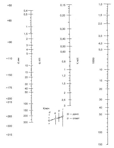 3.4.6 При проведении приближенных гидравлических расчетов следует пользоваться номограммой (приложение А).