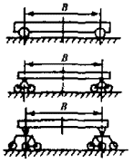 Допускается изменение коэффициента h1, но не более чем на два шага по группе классификации в большую или меньшую сторону (см. табл. 3) с соответствующей компенсацией путем изменения величины Zp (см. табл. 2) на то же число шагов в меньшую или большую сторону. 2.8.3. Канатоемкость барабана должна быть такой, чтобы при наинизшем возможном положении грузозахватного органа на барабане оставались навитыми не менее полутора витков каната или цепи, не считая витков, находящихся под зажимным устройством. 2.8.4. Барабаны под однослойную навивку каната должны иметь нарезанные по винтовой линии канавки. У грейферных кранов при однослойной навивке каната на барабан и у специальных кранов, при работе которых возможны рывки и ослабление каната, барабаны должны иметь канавку глубиной не менее половины диаметра каната либо снабжаться устройством, обеспечивающим правильную укладку каната или контроль положения каната на барабане (канатоукладчиком). Применение гладкого барабана допускается в тех случаях, когда по конструктивным причинам необходима многослойная навивка каната на барабан, а также при навивке на барабан цепи. 2.8.5. Гладкие барабаны и барабаны с канавками, предназначенные для многослойной навивки каната, должны иметь реборды с обеих сторон барабана. Барабаны с канавками, предназначенные для однослойной навивки двух ветвей каната, ребордами могут не снабжаться, если ветви навиваются от краев барабана к середине. При навивке на барабан с канавками одной ветви каната реборда может не устанавливаться со стороны крепления каната на барабане. Допускается применение безребордных барабанов электрических талей, снабженных устройством, исключающим сход каната с барабана (канатоукладчиком). Реборды барабанов для канатов должны возвышаться над верхним слоем навитого каната не менее чем на два его диаметра, а для цепей - не менее чем на ширину звена цепи. 2.8.6. При многослойной навивке каната на барабан должна быть обеспечена правильная укладка каждого слоя каната. 2.8.7. При применении сдвоенного полиспаста должен быть установлен уравнительный блок или балансир. 2.8.8. Блоки должны иметь устройство, исключающее выход каната из ручья блока. Зазор между указанным устройством и ребордой блока должен составлять не более 20% от диаметра каната. 2.9. Цепи2.9.1. Пластинчатые цепи, применяемые на кранах, должны соответствовать ГОСТ 191. Сварные и штампованные цепи, применяемые в качестве грузовых, должны соответствовать ГОСТ 228 и другим нормативным документам. 2.9.2. Цепи должны иметь сертификат предприятия-изготовителя об их испытании в соответствии с нормативным документом, по которому они изготовлены. При отсутствии указанного сертификата должны быть проведены испытания образца цепи для определения разрушающей нагрузки и проверка соответствия размеров нормативному документу. 2.9.3. Крепление и расположение цепей на кране должны исключать возможность их спадания со звездочек и повреждения вследствие соприкосновения с элементами металлоконструкций крана. 2.9.4. Коэффициент запаса прочности пластинчатых цепей, применяемых в механизмах кранов, по отношению к разрушающей нагрузке должен быть не менее 3 для групп классификации (режима) М1-М2 по ИСО 4301/1 и не менее 5 для остальных групп классификации механизмов. Коэффициенты запаса прочности сварных грузовых 