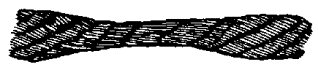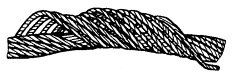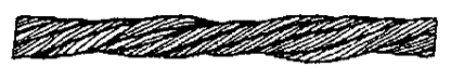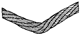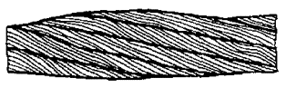 Если груз подвешен на двух канатах, то каждый бракуется в отдельности, причем допускается замена одного, более изношенного, каната. 4. Для оценки состояния внутренних проволок, т.е. для контроля потери металлической части поперечного сечения каната (потери внутреннего сечения), вызванной обрывами, механическим износом и коррозией проволок внутренних слоев прядей (рис. 8), канат необходимо подвергать дефектоскопии по всей его длине. При регистрации при помощи дефектоскопа потери сечения металла проволок, достигшей 17,5% и более, канат бракуется. Необходимость применения дефектоскопии стальных канатов определяют согласно требованиям нормативной документации в зависимости от типа и назначения крана. 5. При обнаружении в канате одной или нескольких оборванных прядей канат к дальнейшей работе не допускается. 6. Волнистость каната характеризуется шагом и направлением ее спирали (рис. 9). При совпадении направлений спирали волнистости и свивки каната и равенстве шагов спирали волнистости НВ и свивки каната НК канат бракуется при dВ³1,08dК, где dВ - диаметр спирали волнистости, dК - номинальный диаметр каната. Рис. 5. Износ наружных проволок каната крестовой свивки: а - небольшие лыски на проволоках; б - увеличенная длина лысок на отдельных проволоках; в - удлинение лысок в отдельных проволоках при заметном уменьшении диаметра проволок; г - лыски на всех проволоках, уменьшение диаметра каната; д - интенсивный износ всех наружных проволок каната (уменьшение диаметра проволок на 40%) Рис. 6. Поверхностная коррозия проволок каната крестовой свивки: а - начальное окисление поверхности; б - общее окисление поверхности; в - заметное окисление; г - сильное окисление; д - интенсивная коррозия Рис. 7. Местное уменьшение диаметра каната на месте разрушения органического сердечника Рис. 8. Уменьшение площади поперечного сечения проволок (интенсивная внутренняя коррозия) Рис. 9. Волнистость каната (объяснение в тексте) При несовпадении направлений спирали волнистости и свивки каната и неравенстве шагов спирали волнистости и свивки каната или совпадении одного из параметров канат подлежит браковке при dВ³4/3dК. Длина рассматриваемого отрезка каната не должна превышать 25dК. 7. Канаты не должны допускаться к дальнейшей работе при обнаружении: корзинообразной деформации (рис. 10); выдавливания сердечника (рис. 11); выдавливания или расслоения прядей (рис. 12); местного увеличения диаметра каната (рис. 13); местного уменьшения диаметра каната (см. рис. 7); раздавленных участков (рис. 14); перекручиваний (рис. 15); заломов (рис. 16); перегибов (рис. 17); повреждений в результате температурных воздействий или электрического дугового разряда. Рис. 10. Корзинообразная деформация Рис. 11. Выдавливание сердечника Рис. 12. Выдавливание проволок прядей: а - в одной пряди; б - в нескольких прядях Рис. 13. Местное увеличение диаметра каната Рис. 14. Раздавливание каната Рис. 15. Перекручивание каната Рис. 16. Залом каната Рис. 17. Перегиб каната Приложение 14ПРЕДЕЛЬНЫЕ НОРМЫ БРАКОВКИ ЭЛЕМЕНТОВ ГРУЗОПОДЪЕМНЫХ МАШИН
