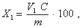 где 20 - объем стандартного раствора железа, см3; 0,001 - массовая концентрация стандартного раствора оксида железа (III), г/см3; V - объем раствора трилона Б, израсходованного на титрование, см3. Выполняют не менее трех титрований и вычисляют средний результат. 5.3. Проведение анализа. Исходные растворы готовят по 4.3.1 или по ГОСТ 2642.4, 3.3.1; 3.3.2; 3.3.4.3. Полученные исходные растворы нагревают до 60 - 70 °С и нейтрализуют раствором аммиака до изменения цвета бумаги Конго (выпадение легкой мути). Затем прибавляют 10 см3 раствора соляной кислоты 1 моль/дм3, несколько капель раствора сульфосалициловой кислоты и титруют раствором трилона Б до перехода окраски раствора из красно-фиолетовой в соломенно-желтую. 5.4. Обработка результатов. 5.4.1. Массовую долю оксида железа (III) X1, %, вычисляют по формуле