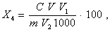 где V3 - объем раствора трилона Б, см3; V4 - объем раствора хлорного железа, см. 5.3. Проведение анализа. 5.3.1. Определение оксида алюминия в кварцитах и кремнеземистых огнеупорных материалах и изделиях. Навеску материала массой 0,5 г помещают в платиновый тигель, смачивают несколькими каплями воды, прибавляют 0,5 см3 серной кислоты, 10 см3 фтористоводородной кислоты и выпаривают досуха на электроплитке со слабым нагревом при периодическом помешивании с помощью щипцов. Сухой остаток нагревают в муфельной печи при температуре (600 ± 20) °С до полного удаления паров серной кислоты. Осадок в тигле смешивают с 3 - 5 г пиросернокислого калия или пиросернокислого натрия и сплавляют в муфельной печи до получения прозрачного расплава. Сплав помещают в стакан, растворяют горячей водой с добавлением 20 см3 раствора соляной кислоты (1 : 3) (раствор 1). Допускается остаток сплавлять со смесью для сплавления, состоящую из углекислого натрия, безводного тетраборнокислого натрия и углекислого калия в соотношении 1 : 1 : 1 и растворять в 60 см3 соляной кислоты (1 : 3). Полученный прозрачный раствор охлаждают до 40 - 50 °С, нейтрализуют раствором гидроксида натрия до красного цвета бумаги Конго и добавляют 15 - 20 см3 в избыток. Раствор с осадком кипятят 3 - 5 мин, охлаждают, переводят в мерную колбу вместимостью 250 см3, доводят водой до метки и перемешивают. Раствор фильтруют через сухой складчатый фильтр, отбросив первые две порции фильтрата, отбирают аликвотную часть раствора 100 см3, помещают в коническую колбу вместимостью 300 см3, нейтрализуют соляной кислотой до синего цвета бумаги Конго и дают 3 - 5 см3 в избыток. В полученный кислый раствор приливают от 15 до 40 см3 0,025 моль/дм3 раствора трилона Б в зависимости от массовой доли оксида алюминия и далее анализ проводят по 4.3. В случае необходимости контроля оксида железа допускается последовательное определение оксида железа и оксида алюминия. При массовой доле оксида алюминия до 5 % раствор 1 переводят в коническую колбу вместимостью 300 см3, при массовой доле свыше 5 % - в мерную колбу вместимостью 250 см3 и отбирают аликвотную часть раствора 100 см3. Определение оксида железа ведут по ГОСТ 2642.5, раздел 5. В раствор после титрования железа прибавляют от 15 до 40 см3 раствора трилона Б, нагревают до 70 - 80 °С, нейтрализуют раствором аммиака до переходного цвета бумаги Конго, приливают 10 - 15 см3 буферного раствора с рН 4,8 - 5,0, 5 - 7 капель индикатора ПАН и оттитровывают избыток трилона Б раствором сернокислой меди до перехода окраски раствора из желтой в сине-фиолетовую. Массовую долю оксида алюминия X, %, вычисляют по формуле