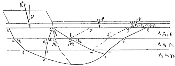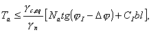 где `j, `c, `d - средние значения соответственно угла внутреннего трения, сцепления грунта основания и угла отклонения результирующей приведенной нагрузки от нормали;