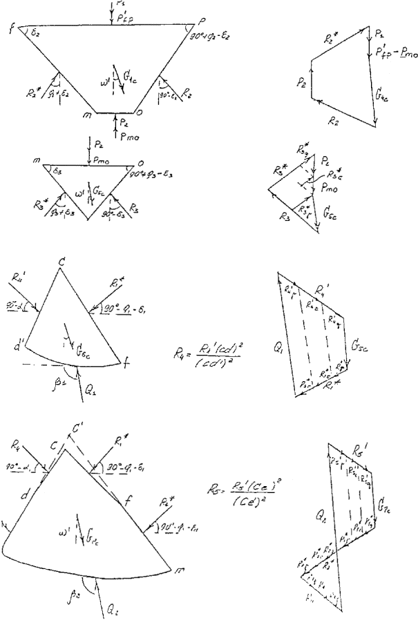 На рис. 6 приведена кинематическая схема для трехслойного основания. Графическая последовательность определения результирующей предельного сопротивления основания приведена на рис. 7-9.