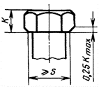 Дата введения 1982-01-01 Настоящий стандарт распространяется на шурупы класса точности В с потайной, полупотайной, полукруглой и шестигранной головками. Стандарт полностью соответствует СТ СЭВ 2331-89. (Измененная редакция, Изм. № 3). 1. ТЕХНИЧЕСКИЕ ТРЕБОВАНИЯ.1.1. Шурупы должны изготовляться в соответствии с требованиями настоящего стандарта и требованиями размерных стандартов. 1.2. Шурупы должны изготовляться: из углеродистых сталей марок 08 кп, 10 кп по ГОСТ 10702, ГОСТ 1050 и ГОСТ 5663; из коррозионностойких сталей по ГОСТ 5632; из латуни по ГОСТ 12920 и ГОСТ 15527. По соглашению между изготовителем и потребителем допускается изготовлять шурупы из других материалов с механическими свойствами не ниже, чем у вышеуказанных материалов. 1.2.1. Настоящий стандарт устанавливает следующие условные обозначения материалов: углеродистые стали ................................................... 0 коррозионностойкие стали ....................................... 2 латуни .......................................................................... 3 (Измененная редакция, Изм. № 2). 1.3.1. Выбор толщины покрытий - по ГОСТ 9.303. (Измененная редакция, Изм. № 3). 1.3.2. Технические требования к внешнему виду покрытий - по ГОСТ 9.301. 1.4. Поле допуска на диаметр стержня шурупа - h14, на длину стержня шурупа - js17. Допуск параллельности стенок прямого шлица относительно оси стержня 0,0875 глубины прямого шлица. Не установленные настоящим стандартом допуски размеров, отклонений формы и расположения поверхностей шурупов - по ГОСТ 1759.1 для изделий класса точности В. (Измененная редакция, Изм. № 2). 1.4.1. (Исключен Изм. № 2). 1.5. Дефекты поверхности шурупов - по ГОСТ 1759.2. На поверхности шурупов также не допускаются: риски, выводящие размеры шурупов за предельные отклонения; наличие частично подрезанных, утолщенных и надорванных участков резьбы суммарной длиной, превышающей 10 % длины резьбы по винтовой линии; ржавчина, не смываемая керосином. (Измененная редакция, Изм. № 2). 1.6. На шурупах не допускаются: притупление ребер шестигранника к опорной поверхности более 0,25 высоты головки (черт. 10); Черт. 10* ________________ * Черт. 1 - 9 исключены. округление ребер шестигранника, выводящее диаметр описанной окружности за предельные отклонения; скругление пояска головок шурупов, выводящее диаметры головок за предельное отклонение; недопрессовка в виде среза вершины полукруглой и полупотайной головки, если диаметр площадки среза превышает 40 % номинального диаметра головки. Недопрессовка не должна выводить высоту головки за предельное отклонение; при изготовлении головки со шлицем методом холодной высадки уменьшение минимального диаметра головки в направлении шлица, превышающее: для шурупов с диаметром резьбы до 2 мм включ. - 0,3 мм; для шурупов с диаметром резьбы от 2,5 до 5 мм включ. - 0,6 мм; для шурупов с диаметром резьбы св. 5 мм - 0,7 мм; при прорезке шлица - увеличение номинального диаметра головки по оси шлица, превышающее 0,1 мм; утолщение диаметра стержня под головкой шурупов более: 0,05 мм на длине до 5 мм - для шурупов диаметром до 16 мм; 0,1 мм на длине до 8 мм - для шурупов диаметром 20 мм; гладкая конусовидная часть между концом сбега и безрезьбовой частью у стержня (черт. 11), редуцированного под накатку резьбы, длиной более двух шагов резьбы; недорез резьбы более двух шагов резьбы (для шурупов с резьбой до головки); (Измененная редакция, Изм. № 2, 3). Черт. 11 1.7. У шурупов с цилиндрической резьбовой частью последние 