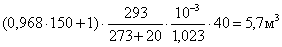 Например, при поставке газообразного азота в баллонах по ГОСТ 949-73 вместимостью 40 дм3 количество газа в баллоне при рабочем давлении 150 кгс/см2 при 20°С составляет