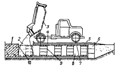 4.7. Для строительства временных дорог применяются железобетонные плиты: на прямых участках - прямоугольные, на поворотах - трапецеидальные (ВСН-90-74).