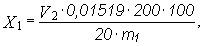 где V2 - объем 0,1 н. раствора марганцовокислого калия, израсходованный на титрование, см3; 0,01519 - масса сернокислого закисного железа, соответствующая 1 см3 0,1 н. раствора марганцовокислого калия, г; m1 - масса кислотной части заряда, взятая для анализа, г. За результат анализа принимают среднее арифметическое трех параллельных определений, допускаемые расхождения между которыми не должны превышать 1,5% относительно среднего результата определяемой величины. 5.6. Определение массы серной кислоты 5.6.1. Аппаратура, реактивы и растворы Колба мерная 1-250-2 по ГОСТ 1770. Колба коническая вместимостью 250 см3. Натрия гидроокись по ГОСТ 4328, раствор с (NaOH)=0,l моль/л (0,1 н.). Фенолфталеин (индикатор), 1 %-ный раствор. Вода дистиллированная по ГОСТ 6709. (Измененная редакция, Изм. № 2). 5.6.2. Проведение анализа 10 см3 фильтрата (п. 5.4.2) переносят в мерную колбу вместимостью 250 см3 разбавляют водой до метки и перемешивают. 20 см3 приготовленного таким образом раствора переносят в коническую колбу, добавляют 100 см3 воды, перемешивают и титруют раствором гидроокиси натрия в присутствии фенолфталеина до розовой окраски раствора. 5.6.3. Обработка результатов Массу серной кислоты (Х2) в граммах вычисляют по формуле