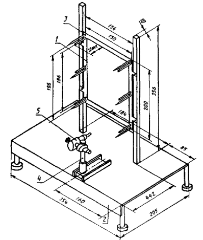 1 - держатель - рамка образца; 2 - основание; 3 - вертикальные стойки; 4 - держатель горелки; 5 - горелка