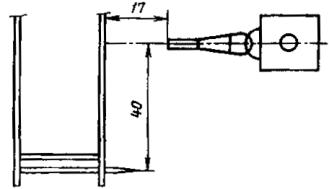 6.2 Горелку устанавливают в горизонтальном положении на 40 мм выше нижней кромки образца и придвигают к образцу на расстояние, равное 17 мм (рисунок 3). Время воздействия пламени на образец - 4с.