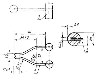 1 - проволока из NiCr, 2 - термопара, 3 - штырь Устройство для испытания нагретой проволокой