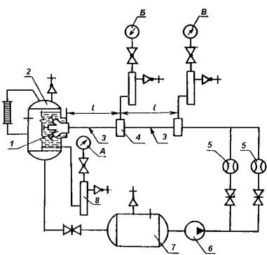 где h1 - разность показаний манометров Б и А (черт. 3), Па; h2 - разность показаний манометров В и Б, Па; r - плотность воды, кг/м3; u - скорость движения воды, м/с, определяемая по формуле