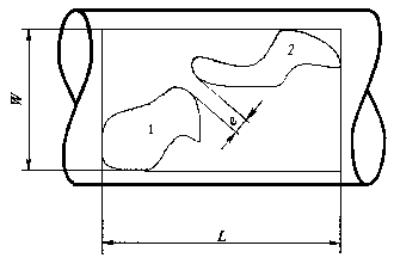 наибольшей глубине 3.3.4. Для нескольких близкорасположенных «язв» предварительно проводится анализ необходимости их объединения по п. 3.4. 3.4.1. Пусть в результате схематизации двух дефектов как одиночных (п. 3.2, п. 3.3.2) они имеют размеры L1, W1 и L2, W2. Расстояние eвл, на котором эти дефекты начнут влиять на напряженно-деформированные состояния друг друга равно