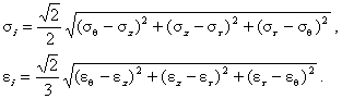 где sт - предел текучести, В соответствии с деформационной теорией пластичности [2] вводятся следующие уравнения, связывающие между собой компоненты деформаций и напряжений: или
