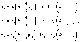 Используя уравнения (П2.21)-(П2.23) получаем соотношения, связывающие компоненты напряжений и деформаций: