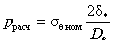 где DН - изменение размера дефекта за период времени Dt от одной до другой процедуры дефектометрии. 6.4. При недостаточном объеме информации о коррозионных свойствах металла и среды на данном участке трубопровода или об изменениях размеров дефекта во времени, скорость коррозии n принимается постоянной и равной 1 мм в год (выше наблюдаемых на практике скоростей коррозии, по крайней мере, на 40 %). 7. ПОРЯДОК ПРОВЕДЕНИЯ РАСЧЕТА7.1. Разделы 2-6 методики являются основой для проведения расчетов, однако порядок проведения конкретных расчетных работ существенно зависит как от цели расчета, так и от объема и достоверности имеющейся исходной информации. 7.2.1. По заданным размерам трубопровода (D, d) и механическим свойствам стали s02, sв (в данном расчете достаточно использовать типичные свойства трубных сталей, а не обязательно данные сертификата на поставку конкретной трубы) определяется проектное рабочее давление рраб (п. 2), соответствующее [I]. Схематизация дефекта проводится по п. 3.2. 7.2.2. Из системы уравнений (4.10)-(4.12) и условий (5.1), (5.2) определяются номинальные напряжения sqном, szном = sqном/2, далее определяется расчетное предельное давление ррасч: и расчетный коэффициент запаса по давлению np =ррасч/ pраб. 7.2.3. Если коэффициент запаса nр оказывается меньше допускаемого [np], то дефект считается закритическим (п. 1.5), необходимо снижение давления до безопасного уровня ррабnp /[np], решение вопроса о ремонте дефектного участка. 7.2.4. Выбор допускаемого коэффициента запаса [np] должен согласовываться с нормативными документами [1]. Для заданных размеров трубы введем давления р02 и рв, соответствующие возникновению в стенке трубы кольцевых напряжений, равных пределу текучести и прочности: Давление р02 - наибольшее допустимое по [1] давление при испытании линейных участков трубопроводов. Отношение давления рв к рабочему (нормативному) давлению рв / pраб(норм) представляет собой полный (проектный) коэффициент запаса в соответствии с [1]. Допускаемый коэффициент запаса [np] рекомендуется выбирать в диапазоне от р02 / pраб(норм) до рв / pраб(норм). В Приложении 6 приведены обобщенные номограммы допускаемых размеров дефектов с коэффициентами запаса [np] = р02 / pраб(норм) и [np] = рв / pраб(норм) и примеры их использования. 7.2.5. Если коэффициент запаса np превышает допустимый [np], то проводится расчет с учетом возможного развития дефекта. Принимается, что размеры дефекта изменяются во времени:
