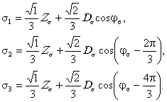 Проекции Ds, Хs, Ys, (П2.9)-(П2.11) содержат только компоненты девиатора, a Zs - только гидростатическую составляющую тензора напряжений. Главные напряжения выражаются через компоненты Хs, Ys, Zs в виде