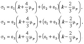 где k - модуль объемного расширения. mp - упруго-пластический модуль сдвига: