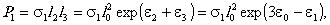 где e0f - разрушающая объемная деформация (при ei = 0), eif - разрушающая интенсивность деформаций (при e0 = 0). Рис. П5.1. Деформационные критерии предельных состояний металла П5.3. Значительное формоизменение при упруго-пластическом деформировании может привести к уменьшению размеров элемента металла и исчерпанию его несущей способности еще до разрушения (Типичный пример - образование «шейки» при одноосном растяжении). После того, как такое состояние достигнуто, дальнейшее деформирование происходит без увеличения нагрузки, неустойчиво. Очевидно, что, хотя металл еще некоторое время сохраняет свою целостность, момент исчерпания несущей способности, даже в ограниченном объеме металла, следует считать недопустимым предельным состоянием. П5.3.1. Рассмотрим элемент металла в виде кубика l0´l0´l0 под действием напряжений s1, s2, s3. В результате нагружения кубик превратится в параллелепипед с размерами l1´ l2´ l3. Усилие P1, передаваемое через элемент металла в направлении наибольшего напряжения s1, будет равно: