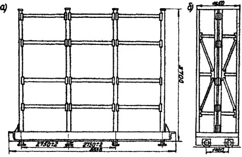 В марке материала цифра обозначает толщину листа в мм. 9.4.1. При перевозке и хранении на складе асбестоцементные листы должны быть уложены в стопы на гладком основании или деревянных прокладках, площадь которых должна быть больше площади листа. В каждой стопе должно быть не более 70 листов. 9.4.2. Асбестоцементные листы и детали при хранении должны быть уложены на специальные поддоны в стопы по сортам, при этом количество листов в стопе не должно превышать: для листов УВ-6 и УВ-7,5, соответственно 135 и 110 шт., а деталей - 25 пар. 9.5. Листы асбестоцементные волнистые среднего и высокого профиля по ГОСТ 20430-75 и ГОСТ 24986-81.9.5.1. При перевозке и хранении листы и крепления к ним должны быть уложены в стопы по 100 шт. и закреплены так, чтобы они не повреждались при движении транспорта или от внешних воздействий. 9.5.2. Площадка для хранения асбестоцементных волнистых листов должна иметь небольшой уклон для стока атмосферных осадков. При укладке листов в штабель под нижний лист штабеля, перпендикулярно гребням волн, следует подложить два бруса на расстоянии от концов листа, равном 1/4 его длины. Листы укладываются лицевой стороной кверху. 9.5.3. Асбестоцементные листы усиленного профиля по ГОСТ 8423-75 при хранении должны быть уложены на поддоны в стопы. Количество листов в стопе не должно превышать 100 шт., количество деталей - 50 шт. Для доставки листов усиленного профиля (ВУ) с базы комплектации на объекты строительства надлежит применять контейнер-поддон № 20 (разработан трестом Мосоргстрой). 9.6. Трубы асбестоцементные9.6.1. Трубы асбестоцементные подразделяются на водопроводные напорные (четырех марок: ВТ3, ВТ6, ВТ9, ВТ12, соответствующие рабочему гидравлическому давлению в 3, 6, 9 и 12 атм) и канализационные безнапорные (двух видов: КМ - муфтовые и КР - раструбные). 9.6.2. Водопроводные трубы отгружают заказчику по спецификации последнего комплектно с асбестоцементными или чугунными муфтами и резиновыми кольцами. Асбестоцементные трубы для безнапорных трубопроводов изготавливают с внутренними размерами от 100 до 600 мм и длиной 3,0-4,0 м. 9.6.3. Трубы и муфты должны быть прямыми, цилиндрической формы, без трещин. Концы труб и муфт не должны быть обломаны. Царапины и сдиры на внутренней обточенной поверхности муфт и на наружной поверхности обточенных концов труб недопустимы. 9.6.4. Асбестоцементные трубы и муфты можно хранить под навесом или на открытой ровной площадке в штабелях высотой до 1,2 м. Трубы укладывают горизонтальными, а муфты - вертикальными рядами. 9.6.5. Для пакетирования, погрузки и разгрузки асбестоцементных труб рекомендуется пользоваться захватом, разработанным трестом Мосоргстрой. Количество захватываемых труб в пакете: 170 шт. - при внутреннем диаметре 100 мм; 85 шт. - при диаметре 141 мм; 50 шт. - при диаметре 189 мм. 9.6.6. При отправке с базы комплектации на объекты строительства асбестоцементных стволов мусоропроводов следует пользоваться контейнером № 8, (разработан трестом Мосоргстрой), вмещающим 12 труб, общей грузоподъемностью 2000 кг. На рис.19 показаны контейнеры с элементами ствола мусоропровода. 10. МАТЕРИАЛЫ РУЛОННЫЕ, КРОВЕЛЬНЫЕ И ГИДРОИЗОЛЯЦИОННЫЕ10.1. Рубероид10.1.1. Рубероид по ГОСТ 10923-82 должен применяться в соответствии с действующими строительными нормами и правилами на производство кровельных и гидроизоляционных работ. 10.1.2. В зависимости от назначения рубероид п