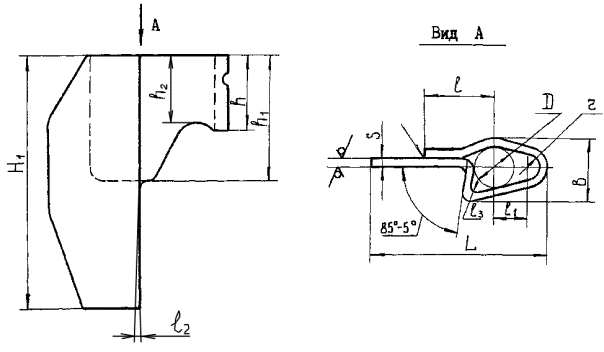 Примечания: 1. Высота захвата Н указана при установке зажима до затяжки болта. 2. Нагрузочная способность зажима Q - максимально допустимое усилие на рабочие поверхности зажима, состоящее из рабочего усилия и усилия предварительной затяжки болта. (Измененная редакция, Изм. № 1). 3. Конструкция и размеры траверс должны соответствовать указанным на черт. 2 и в табл. 2.