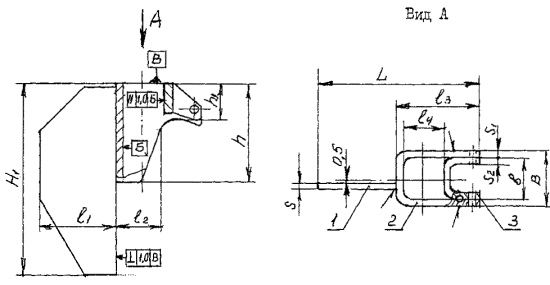 1 - траверса; 2 - болт по ОСТ 26-2037-77, 3 - гайка по ОСТ 26-2038-77; 4 - шайба по ГОСТ 10450-78 Примечание. Допускается применять болт по ГОСТ 7805-70 и ГОСТ 15590-70 Черт. 3 Таблица 2а Размеры, мм