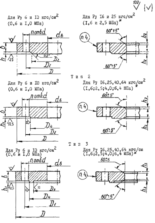 фланца типа 3, обозначенных 12,5Ö и 25Ö, при применении