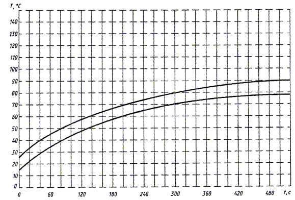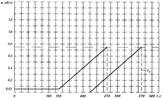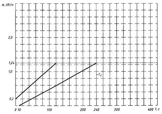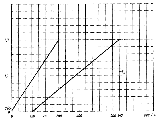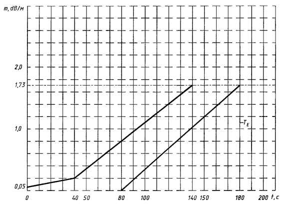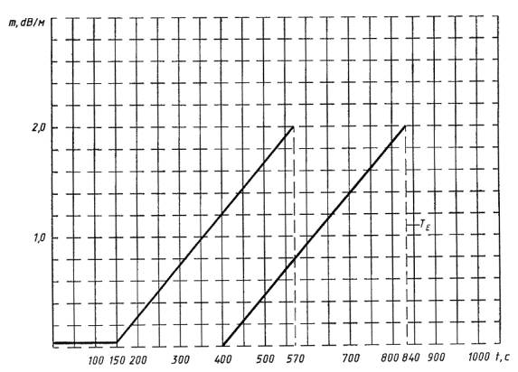 Рисунок И.1 1 - испытательное помещение, 2 - контрольно-ионизационная камера; 3 - измеритель оптической плотности, 4 - пожарные извещатели; 5 - тестовый очаг пожара ПРИЛОЖЕНИЕ К(обязательное) ТЕХНИЧЕСКИЕ ХАРАКТЕРИСТИКИ ИЗМЕРИТЕЛЯ ОПТИЧЕСКОЙ ПЛОТНОСТИ ДЫМАК техническим характеристикам измерителя оптической плотности дыма относятся: - длина зоны измерения должна быть (1 ± 0,01) м; - оптическая система прибора должна иметь такую конструкцию, чтобы приемник излучения не воспринимал излучения за пределами угла в 3°; - не менее 50% эффективной мощности источника излучения должно быть в диапазоне длин волн от 800 до 950 нм, при этом не более 1% эффективной мощности излучения должно приходиться на диапазон длин волн менее 800 нм и не более 10% эффективной мощности на диапазон длин волн, превышающих 1050 нм; - диапазон измерения оптической плотности от 0 до 2 дБ/м; - погрешность измерения не должна превышать 0,02 дБ/м ± 5,0 % от измеряемой оптической плотности дыма. ПРИЛОЖЕНИЕ Л(обязательное) ГРАФИКИ СТАНДАРТНЫХ ЗАВИСИМОСТЕЙ ПАРАМЕТРОВ СРЕДЫ ТЕСТОВЫХ ОЧАГОВ ПОЖАРА ТП-1 - ТП-6