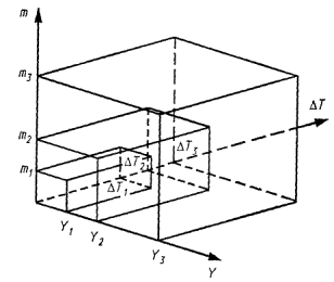 7.6 Результаты испытаний заносят в таблицу 1. 7.7 Для каждого ТП один из его параметров является превалирующим, т.е. первым достигает максимального значения, указанного в приложениях Б - Ж, при достижении которого испытание считают завершенным. Отношения m/Y и DG/G0 в конце испытания служат для проверки воспроизводимости ТП. 7.8 Если ПИ не сработал до достижения предельных значений параметров среды ТП, то считают, что ПИ не выдержал испытания. В графе «Примечание» таблицы 1 делают соответствующую запись. 7.9 Тепловые ПИ проверяют на воздействие ТП-6. Дымовые ПИ проверяют на воздействие всех ТП, кроме ТП-6. 7.10 Перед началом каждого испытания в помещении необходимо установить исходные параметры среды, указанные в 5.3. 8 КЛАССИФИКАЦИЯ ПОЖАРНЫХ ИЗВЕЩАТЕЛЕЙ ПО СЕЛЕКТИВНОЙ ЧУВСТВИТЕЛЬНОСТИ К ТЕСТОВЫМ ОЧАГАМ ПОЖАРА8.1 Для классификации ПИ по чувствительности к ТП устанавливают три класса ПИ со следующими предельными значениями: класс А DT1=15°С, m1=0,5 дБ/м, Y1=1,5; класс В DT2=30°С, m2=1,0 дБ/м, Y2=3,0; класс С DT3=60°С, m3=2,0 дБ/м, Y3=6,0. 8.2 В трехмерной системе координат с осями DT, m и Y эти величины определяют три прямоугольных параллелепипеда (приложение М). Параметры среды DTa, ma, Ya, при которых произошло срабатывание ПИ, и значения которых указаны в таблице 1, являются точками в этой системе координат. 8.3 Если точки параметров срабатывания всех испытуемых ПИ находятся в пределах наименьшего параллелепипеда, т.е. если DTa<DT1; ma<m1; Ya<Y1, то по селективной чувствительности к этому типу ТП ПИ относят к классу А. 8.4 Если точки параметров срабатывания всех испытуемых ПИ находятся в пределах среднего параллелепипеда, т.е. если DTa<DT2; ma<m2; Ya<Y2, то по селективной чувствительности к этому типу ТП ПИ относят к классу В. 8.5 Если точки параметров срабатывания всех испытуемых ПИ находятся в пределах наибольшего параллелепипеда, т.е. если DTa<DT3; ma<m3; Ya<Y3, то по селективной чувствительности к этому типу ТП ПИ относят к классу С. 8.6 Если точки параметров срабатывания одного или нескольких из испытуемых ПИ находятся за пределами наибольшего параллелепипеда, то по селективной чувствительности к этому типу ТП ПИ не классифицируют. 8.7 Результаты оформляют в виде таблицы 2. Таблица 2- Пример таблицы классификации ПИ определенного типа по селективной чувствительности