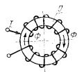 Примечание. Обозначения: О - объект контроля; Ф - магнитный поток; I - электрический ток. 4.4.4. При намагничивании объектов применяют следующие виды электрического тока: постоянный, переменный однофазный и трехфазный, выпрямленный однополупериодный и двуполупериодный, импульсный. 4.4.5. При циркулярном намагничивании объектов, имеющих поперечное сечение простой формы, а также крупногабаритных объектов значение тока определяют в зависимости от требуемой напряженности магнитного поля на контролируемой поверхности, формы и размеров сечения объекта контроля по формулам, приведенным в рекомендуемом приложении 5. 4.4.6. Комбинированное намагничивание применяют при контроле СПП. При комбинированном намагничивании двумя токами одного вида: переменным синусоидальным или выпрямленным однополупериодным и двухполупериодным, их фазы должны быть сдвинуты относительно друг друга. 4.4.7. Намагничивание во вращающемся магнитном поле применяют при контроле СОН объектов сложной формы, а также объектов с большим размагничивающим фактором, с ограниченной контактной площадью или с нетокопроводящими гальваническими покрытиями. 4.5. Для нанесения магнитного порошка на поверхность объекта применяют: способ магнитной суспензии; способ сухого магнитного порошка; способ магнитогуммированной пасты. 4.5.1. Магнитную суспензию наносят на контролируемую поверхность путем полива или погружения объекта в ванну с суспензией, а также аэрозольным способом. 4.5.2. Сухой магнитный порошок наносят на контролируемую поверхность при помощи различных распылителей, погружением объекта в емкость с порошком, а также способом воздушной взвеси. Способ воздушной взвеси применяют при выявлении подповерхностных дефектов, а также дефектов под слоем немагнитного покрытия толщиной от 100 до 200 мкм. 4.5.3. Магнитогуммированную пасту приготавливают непосредственно перед применением и наносят на контролируемую поверхность в жидком виде. Способ магнитогуммированной пасты применяют при контроле внутренних стенок полостей диаметром менее 20 мм при отношении глубины к диаметру 1 к 10. 4.6. Осмотр контролируемой поверхности и регистрацию индикаторных рисунков выявляемых дефектов проводят визуально или с применением автоматизированных систем обработки изображений. 4.6.1. При визуальном осмотре могут быть использованы различные оптические устройства (лупы, микроскопы, эндоскопы). Выбираемое увеличение оптического устройства зависит от шероховатости поверхности детали, типа обнаруживаемых дефектов, условий контроля и т.п. 4.6.2. Освещенность контролируемой поверхности при использовании магнитных порошков естественной окраски, а также цветных магнитных порошков должна быть не менее 1000 лк. При этом следует применять комбинированное освещение (общее и местное). 4.6.3. При использовании люминесцентных магнитных порошков осмотр контролируемой поверхности следует проводить при ультрафиолетовом облучении источником с длиной волны 315 - 400 нм. При этом УФ-облученность контролируемой поверхности должна быть не менее 2000 мкВт/см2 (200 отн. ед. по ГОСТ 18442-80). 4.7. Участок магнитопорошкового контроля должен быть снабжен дефектограммами с видами индикаторных рисунков характерных дефектов, а также стандартным образцом. Стандартный образец должен иметь паспорт и дефектограмму. 4.8. Детали, призна
