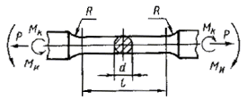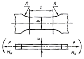таким образом, чтобы параметр подобия усталостного разрушения При изгибе с вращением, кручении и растяжении - сжатии образцов типов I, II, V, VIII L = n ´ d; при изгибе в одной плоскости образцов типов III, IV, VI, а также при растяжении - сжатии образцов типа VI L = 2b; при растяжении - сжатии образцов типов III, IV, VII, IX, Х L = 2h. 1.3. Для испытания на малоцикловую усталость применяют образцы типов II и IV, если отсутствует опасность продольного изгиба. Допускается применять образцы типов I и III. 1.4. Рабочая часть образцов должна быть изготовлена по точности не ниже 7-го квалитета ГОСТ 25347-82. 1.5. Параметр шероховатости поверхности рабочей части образцов Ra должен быть 0,32-0,16 мкм по ГОСТ 2789-73. Поверхность не должна иметь следов коррозии, окалины, литейных корок и цветов побежалости и т. п., если это не предусмотрено задачами исследования. 1.6. Расстояние между захватами испытательной машины выбирают так, чтобы исключить продольный изгиб образца и влияние усилий в захватах на напряженность в его рабочей части. 1.7. Вырезка заготовок, маркирование и изготовление образцов не должны оказывать существенного влияния на усталостные свойства исходного материала. Нагрев образца при изготовлении не должен вызывать структурных изменений и физико-химических превращений в металле; припуски на обработку, параметры режима и последовательность обработки должны сводить к минимуму наклеп и исключать местный перегрев образцов при шлифовании, а также трещины и другие дефекты. Снятие последней стружки с рабочей части и головок образцов производят с одной установки образца; заусенцы на боковых гранях образцов и кромках надрезов должны быть удалены. Заготовки вырезают в местах с определенной ориентацией по отношению к макроструктуре и напряженному состоянию изделий. 1.8. В пределах намеченной серии испытаний технология изготовления образцов из однотипных металлов должна быть одинаковой. 1.9. Измерение размеров рабочей части изготовленных образцов до испытаний не должно вызывать повреждения ее поверхности. 1.10. Рабочую часть образца измеряют с погрешностью не более 0,01 мм. 2. АППАРАТУРА2.1. Машины для испытаний на усталость должны обеспечивать нагружение образцов по одной или нескольким схемам, приведенным на черт. 11-16. Машины для испытаний на усталость, обеспечивающие также проведение статических испытаний на разрыв, должны соответствовать требованиям ГОСТ 1497-84. Чистый изгиб при вращении образцов типов I, II, V, VIII