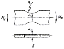 Поперечный изгиб при вращении образцов типов I, II, V, VIII при консольном нагружении