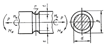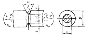 1.2. Чувствительность металла к концентрации напряжений и влиянию абсолютных размеров определяют на образцах типов: V - с V-образной кольцевой выточкой (черт. 5, табл. 5-8); Рабочая часть образца типа V