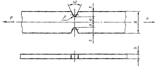 X - с симметричными боковыми надрезами V-образного профиля (черт. 10, табл. 13). Рабочая часть образца типа Х