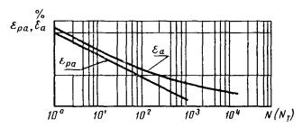 Зависимость амплитуды пластических деформаций от числа полуциклов нагружения