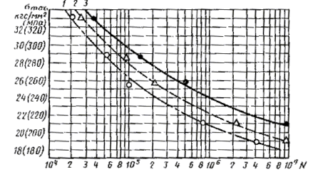 4.3.4. По результатам испытаний при мягком нагружении строят: кривую усталости в