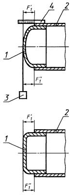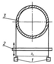 где Vi, Vi-1 - вместимости резервуара, соответствующие уровням Hi, Hi-1 и вычисленные при: - геометрическом методе поверки - по формулам (Д.26) и (Д.33) приложения Д. - объемном методе поверки - по формуле (10). 10.3.5 Значения посантиметровой вместимости резервуара, указанные в градуировочных таблицах, соответствуют температуре 20 °С. 10.3.6 Порядок расчета при составлении градуировочной таблицы 10.3.6.1 Обработка результатов поверки может быть проведена ручным способом или с использованием ЭВМ. 10.3.6.2 Результаты измерений оформляют протоколом поверки. 10.3.6.3 Протокол поверки является входным документом при расчете градуировочной таблицы на ЭВМ. 10.3.6.4 Требования к машинному алгоритму обработки результатов измерений: - вместимость резервуара, приходящуюся на 1 см высоты наполнения, вычисляют последовательным суммированием значений вместимостей, приходящихся на 1 мм высоты наполнения; - последовательно суммируя значения вместимостей каждого миллиметра наполнения, вычисляют вместимость резервуара с интервалом 1 см. 11 Оформление результатов поверки11.1 Положительные результаты поверки резервуара оформляют свидетельством о поверке по форме, установленной национальной (государственной) метрологической службой. На табличку, прикрепленную к измерительному люку или измерительной трубе, наносят данные в соответствии с К.15 приложения К. 11.2 К свидетельству о поверке прилагают: а) градуировочную таблицу; б) протокол поверки (оригинал прикладывают к первому экземпляру градуировочной таблицы); в) эскиз резервуара; г) журнал обработки результатов измерений при поверке; д) акт измерений базовой высоты (прикладывается ежегодно по результатам измерения базовой высоты); е) опись деформации. 11.3 Формы титульного листа градуировочной таблицы и градуировочной таблицы приведены в приложении Л. Форма протокола поверки резервуара геометрическим методом приведена в приложении Б, объемным методом - в приложении Г. Форма акта измерения базовой высоты резервуара приведена в приложении М. Протокол поверки, титульный лист и последнюю страницу градуировочной таблицы подписывают поверители. Подписи поверителей заверяют оттисками поверительного клейма, печати (штампа). 11.4 На каждом листе документации (по перечислениям а - е пункта 11.2) должен быть проставлен порядковый номер листа. 11.5 Градуировочные таблицы на резервуары утверждает руководитель организации национальной (государственной) метрологической службы или руководитель аккредитованной на право поверки метрологической службы юридического лица. 11.6 Типовые программы расчета градуировочных таблиц на ЭВМ по настоящему стандарту разработаны в ГНМЦ - ВНИИР и ВНИИМС. Программы, разработанные другими организациями, подлежат экспертизе, аттестации и утверждению в ГНМЦ - ВНИИР или ВНИИМС. ПРИЛОЖЕНИЕ А(справочное)Схемы измерений параметров резервуаров при поверке геометрическим и объемным методами1 - двойной отвес, 2 - измерительная рулетка, 3 - резервуар, Dн - наружный диаметр цилиндрической части резервуара Рисунок А.1 - Схема двойного отвеса 1, 6 - днища; 2, 4, 5 - пояса; 3 - горловина; 7 - отвес; 8 - измерительная металлическая линейка Рисунок А.2 - Схема измерений параметров резервуара 1 - днище; 2 - пояс; 3 - отвес; 4 - измерительная металлическая линейка Рисунок А.3 - Схема измерений параметров сферического и плоского днищ 1, 4 - подст