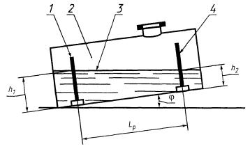 И.7 Вычисление базовой высоты Н0 = .... мм ________________________________ подпись, инициалы, фамилия «___» ___________________ _____ г. ПРИЛОЖЕНИЕ К(обязательное)Основные технические требования к стальным горизонтальным цилиндрическим резервуарамK.1 Резервуары изготавливают в соответствии с нижеизложенными требованиями по рабочим чертежам, утвержденным в установленном порядке. К.2 Новые типы резервуаров, предназначенные для проведения государственных учетных и торговых операций с нефтью и нефтепродуктами и их хранения, а также взаимных расчетов между поставщиком и потребителем, должны подвергаться обязательным испытаниям для целей утверждения типа. К.3 Резервуары подразделяют: по вместимости - от 3 до 200 м3; по форме - горизонтальные, цилиндрические; по расположению - наземные, подземные, частично врытые в землю; по принципу действия - открытые, закрытые; по значению внутреннего избыточного давления - низкого давления, повышенного давления. К.4 Резервуары и их оборудование изготавливают из металла, обладающего достаточной устойчивостью к физическому и химическому воздействиям рабочей жидкости и окружающей среды. Резервуары должны быть рассчитаны на внутреннее давление паров в газовом пространстве не более 0,039 МПа и на вакуум не более 0,001 МПа. К.5 Резервуары изготавливают, устанавливают и крепят так, чтобы при наполнении и опорожнении не возникали существенные изменения вместимости, например, вследствие деформации, прогибов или смещений резервуара, меток отсчета и встраиваемых деталей. К.6 При эксплуатации обеспечивают полное наполнение и полное опорожнение резервуара без образования воздушных мешков. К.7 Трубы для подвода и вывода жидкости в сочетании с резервуаром изготавливают так, чтобы при измерениях объема была исключена возможность притока или выхода жидкости произвольным образом при наполнении, опорожнении или определении вместимости. К.8 Резервуары могут быть расположены на поверхности или под землей. К.9 Резервуары могут быть оснащены стационарно встроенными элементами: змеевиками, пеноотводами, лестницами, мешалками и другими устройствами. К.10 Для измерений уровня жидкости резервуары оснащают: - измерительной трубой со сквозными прорезями в стенке (по высоте и окружности трубы) для установления рабочих и эталонных средств измерений уровня жидкости; - измерительным люком с планкой, изготовленной из бронзы или латуни для ручных измерений уровня жидкости, или указателями уровня со шкалой для визуального определения уровня жидкости. К.11 Измерительную трубу изготавливают так, чтобы она обеспечивала установление рабочих и эталонных средств измерения уровня жидкости. Измерительную трубу соединяют с резервуаром в его среднем сечении. При этом продольная ось измерительной трубы должна проходить через вертикальный диаметр резервуара. По всей длине измерительная труба должна иметь сквозные прорези, обеспечивающие быстрое выравнивание уровня жидкости в измерительной трубе относительно резервуара. Если измерительная труба закрыта снизу, то первые прорези должны начинаться у дна измерительной трубы. К.12 Внутренний диаметр измерительной трубы выбирают таким образом, чтобы не было искажения результатов измерений при больших скоростях изменения уровня жидкости. Диаметр измерительной трубы должен быть не более 500 мм. К.13 Измерительна