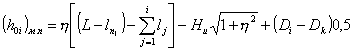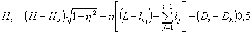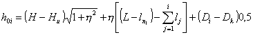 где Di - диаметр i-го пояса, вычисляемый по формуле (Д.6); m - число поясов резервуара; h - степень наклона резервуара, вычисляемая по формуле (Д.1);
