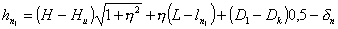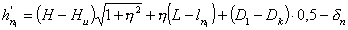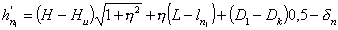 D - диаметр цилиндрической части резервуара, вычисляемый по формуле (Д.22); L - длина цилиндрической части резервуара, вычисляемая по формулам (Д.18) или (Д.19), (Д.20) или (Д.21); n, Dn - объем внутренних деталей, приходящийся на 1 см уровня наполнения, и его абсолютная погрешность соответственно. Значения величины n вычисляют по формулам (Д.57), (Д.58), (Д.59); Н - уровень наполнения резервуара; Ни - исходный уровень наполнения резервуара, вычисляемый по формуле (Д.28); hj - высота расположения j-й детали; DL - абсолютная погрешность измерений длины цилиндрической части резервуара, вычисляемая по формуле