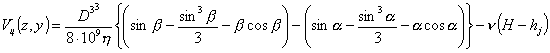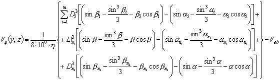 Д.8.1.6 Вместимость цилиндрической части резервуара Vц(y, z) при уровне Н выше исходного уровня вычисляют по формуле