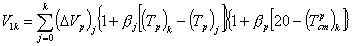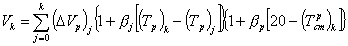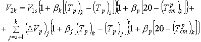 Ж.4.1.1 Значение k принимают равным 0 при наливе в резервуар начальной дозы (DVp)0; k = 1 - при наливе дозы (DVp)1; k = 2 - при наливе дозы (DVp)2, ...; k= N - при наливе последней дозы (DVp)N. Ж.4.2 При невозможности измерения температуры жидкости в резервуаре при наливе в него каждой дозы в соответствии с 9.2.3, 9.2.4 дозовую вместимость резервуара вычисляют по формулам: а) при наполнении резервуара первой суммарной дозой Значения k принимают равными 0, 1, 2, 3, .., s. Температуры (Тр)1, (Тр)2, ..., (Тр)s-1 вычисляют по формуле (Ж.7), используя результаты измерений температур (Тр)0 и (Тр)s; б) при наполнении резервуара второй суммарной дозой где V1s - вместимость резервуара при уровне 500 мм, вычисляемая по формуле (Ж.18) при k = s. Значения k выбирают из ряда: s+1, s+2, s+3, …, m. Температуры (Тр)s+1, (Тр)s+2, ..., (Тр)m-1 вычисляют по формуле (Ж.9), используя результаты измерений температур (Тр)s и (Тр)m; в) при наполнении резервуара третьей, четвертой и др. суммарными дозами дозовые вместимости его вычисляют аналогично методике, изложенной выше. Ж.4.3 Температурные поправки не учитывают в формулах (Ж.17), (Ж.18) и (Ж.19), если выполняются условия: а) при применении воды