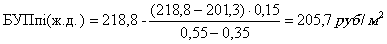 где Fб = 10000 кв. м. 2.3. В таблице № 1 представлен расчет значений БУПп(у) для базовой величины общей площади (Fб), выполненный в соответствии с «Порядком определения стоимости проектных работ для строительства в Москве» (4-я редакция), МРР-3.2.06.04-00. 2.4. Значения БУПп(i) для промежуточных «n» принимаются по интерполяции. Значение усредненных базовых показателей стоимости проектных работ (БУПп(у)) в рублях на 1 кв. м. общей площади при Fб = 10000 кв. м., определенных в зависимости от величины базовых удельных показателей стоимости строительства (БУПс(98))