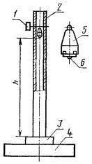 где h - высота падения, м; m - масса бойка, кг; Е - энергия удара, Дж. Боек должен иметь ударную часть сферической формы диаметром 25 мм из закаленной стали твердостью не менее HRC 32. Масса бойка должна быть не менее 0,25 кг при испытании с энергией удара 1 и 2 Дж; 1 кг при испытании с энергией удара 4 я 10 Дж; 2 кг при испытании с энергией удара 20 Дж. Испытание проводится на полностью смонтированном и готовом к эксплуатации электрооборудовании. Допускается подвергать испытанию демонтированные прозрачные части и решетки, закрепленные в своих или эквивалентных устройствах. Прозрачные части оболочки испытываются на трех образцах, каждый из которых испытывается только один раз. Во всех остальных случаях испытания проводятся на двух образцах (по согласованию с испытательной организацией - на одном образце); каждый из которых испытывается два раза. Точка удара выбирается на наименее прочной части оболочки. При испытании светопропускающих (прозрачных) частей удар должен наноситься в центре плоских дисков, посредине цилиндрических трубок, в средней части сферического колпака.