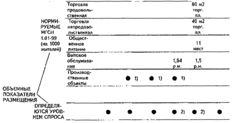1) Согласно п.2.1.3. 2) Дополнительно к нормируемому уровню. Примечание: Нормируемые показатели по объектам торгово-бытового обслуживания распространяются также и на крупные предприятия Ареалы функционирования МП обычно распространяются на территорию всего города и внутри группы почти не ранжируются. Важнейшие общие требования - хорошая транспортно-временная доступность и градостроительная репрезентативность местоположения. Поэтому наиболее предпочтительно размещение таких МП в системе общегородского центра и прилегающих к нему территорий. × на жилой территории допускается размещение МП не выше V класса вредности* площадью до 200 кв.м. каждое при условии полной локализации возможных отрицательных воздействий производства на окружающую среду в границах помещения (участка) МП. Ограничены также суммарные объемы размещения: по микрорайону - до 50 человек при общей площади занимаемой территории до 0,5 га; по жилому району - до 500 человек при общей площади территории до 5,0 га; × на территориях многофункциональных и специализированных городских центров - МП не выше V класса вредности при условии полной локализации возможных отрицательных воздействий производства на окружающую среду в границах МП и в пределах суммарной численности работающих до 500 человек при общей площади занимаемой территории до 0,5 га; × в городских зонах общественной застройки - МП не выше V класса вредности при условии полной локализации возможных отрицательных воздействий производства на окружающую среду в границах МП и в пределах суммарной численности работающих до 10 тыс. человек при общей площади территории до 5,0 га; (на примагистральных территориях - до 0,5 га); × на территориях производственных и коммунальных зон - МП III-V классов вредности в пределах суммарной численности работающих до 10 тыс. человек и общей площади территории (до 200 га). * По классификации, установленной СанПиН 2.2.1/2.1.1-597-96 «Санитарно-защитные зоны и санитарная классификация предприятий, сооружений и иных объектов». 2.2. Опережающее развитие фонда помещений для МП2.2.1. Необходимым условием успешного развития малого предпринимательства (особенно в период его становления) является опережающее развитие фонда нежилых помещений для МП (далее фонда), т.к. превалирующая масса МП начинает свою деятельность не с возведения собственных зданий, а с отыскания и приспособления имеющихся нежилых помещений. Связывание на длительный срок значительных финансовых средств при их повсеместной недостаточности у МП, высокая плата за кредит (объективно большая, чем для крупных предприятий), дефицитность городских земельных ресурсов, градостроительная и экономическая неэффективность мелкообъемного строительства перед современными интегрированными формами - основные причины, ограничивающие ведение МП строительства собственных зданий. 2.2.2. В целях развития МП, обеспечения их необходимыми по размещению и планировке помещениями рекомендуется разработка Территориальных схем развития Фонда (ТСР). Для данной территории (округ, район) ТСР должна дать ответы на следующие главные вопросы: × состояние Фонда; × объем и структура (по типам) недостающих площадей; × их размещение в планировке и застройке данной территории; × предложения по механизму инвестирования развития Фонда. 2.2.3. ТСР рекомендуется разрабатывать 