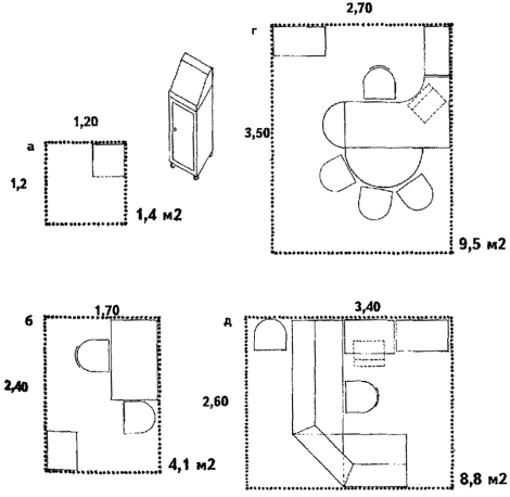 3.1. Минимальные размеры офисных рабочих мест (м)
